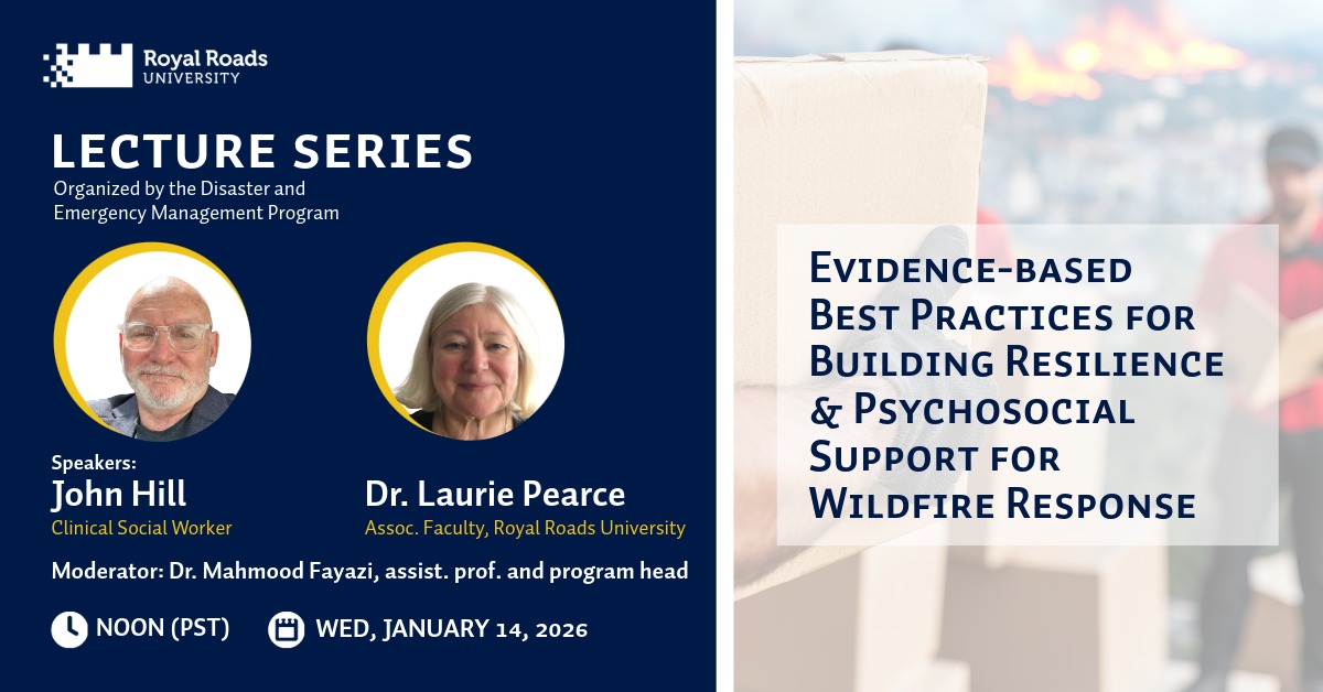 Royal Roads' faculty, researches and esteemed external experts share cutting-edge knowledge and foster dialogue in disaster and emergency management.